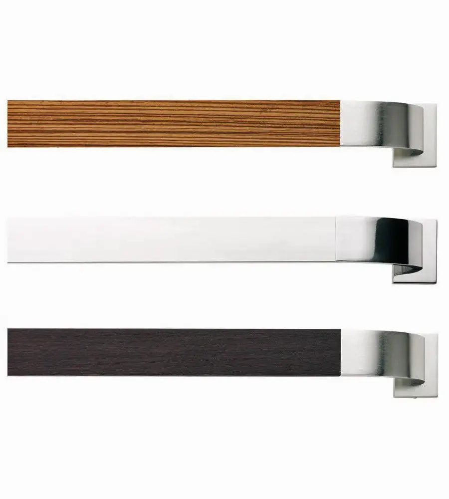 For added versatility, a second rail can be housed within the brackets, equipped with gliders for pleated or WAVE panels. Matching holdbacks complete the look. Available in aluminum, with rail options in wood, the Carla track combines elegance with practicality, perfectly complementing your window treatments.